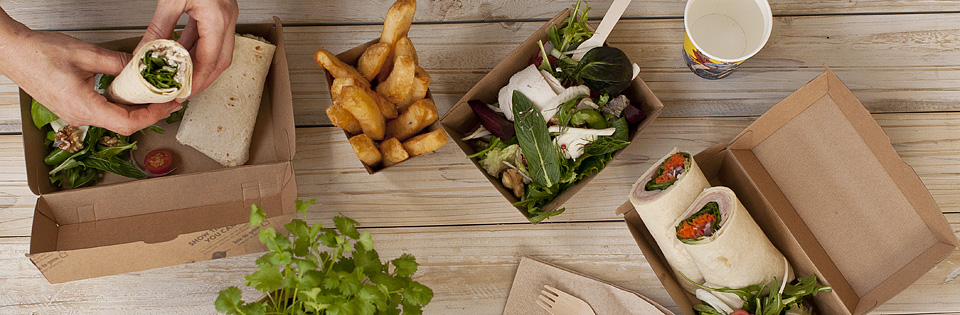 Wide range of takeaway clam shells, food trays and chip cups, various sizes available.